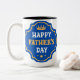 Fira pappa på fars dag med en mugg han kommer att älska! Denna högkvalitativa keramikmugg har ett klassiskt blått och guld färgschema med ett festligt "Glad fars dag"-meddelande och en charmig krongrafik. Det är den perfekta gåvan för att visa pappa hur mycket du bryr dig.