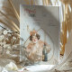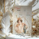 Förhöj din bröllopsfest eller speciella tillställning med denna fantasifulla meny- och dryckeskort inspirerad av Art Nouveau. Med en elegant kvinna iklädd en persikofärgad klänning och blomsterkrans på huvudet, som håller i en champagneflaska, utstrålar designen vintage charm och firande. Den känsliga vattenfärg-stilen i bakgrunden med stänk av champagne-guld tillför sofistikation, medan det glada uttrycket skapar en livlig och inbjudande atmosfär. Perfekt för vintage-, romantiska eller fantasifulla bröllopsteman, listar detta anpassningsbara kort vackert er mat och dryck.