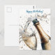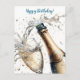 En vacker illustrerad bild av en champagneflaska som hälls upp i ett kristallglas. Champagnen är bubblig och gnistrar i ljuset, med vätskedroppar som stänker runt omkring, vilket skapar en energisk och festlig atmosfär.