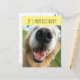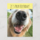 Skicka speciella födelsedagsgratulationer med detta söta vykort! Designen har ett fotografi av en glad golden retriever-hund med ett stort lömskt leende i ansiktet. Anpassningsbar text lyder "Det är din födelsedag!" och "Låt oss fira."