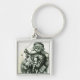 Glad gammal jultomten fyrkantig silverfärgad nyckelring