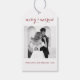 Lägg till en romantisk och festlig touch till din julpresent med denna eleganta ”Glad & Gift” presentetikett. Perfekt för nygifta som firar sin första jul tillsammans, har denna anpassningsbara design plats för ditt foto och familjenamn. Idealisk för presenter, fester, bröllopspresenter, säsongsbetonad inpackning och juldekorationer. Anpassa namnen, året och meddelandet för att skapa en unik minnesetiket.
