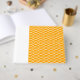 Känn havet i denna djärva, moderna sommardesign med snyggt överlappande skalopade ovaler som skapar en upprepning av söt gyllene gult vinkar som skisseras i vitt. En lämnat coola för sommarvita lodrät kant rand avslutar sammansättningen.