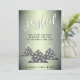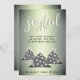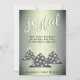 Glad grön metallisk julgransfamilj semesterkort. 3 abstrakta grå julgranar med vita bollar och snö står på en olivgrön metallisk bakgrund. Anpassa med din text, namn och år.