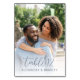 Det här bröllopsbordskortet har ett hjärtvärmande fotografi av två personer som kramar varandra i en utomhusmiljö och fångar ett ögonblick av glädje och tillgivenhet. Designen har en mjuk färgpalett med naturliga toner som grönt, grått och dämpade klädnyanser som skapar en lugn och romantisk atmosfär. Elegant typografi längst ner framhäver "bord 12" i kursiv stil, följt av namn i ett rent sans-serif-teckensnitt, vilket ger en personlig touch till firandet. Perfekt för bröllop eller intima sammankomster kombinerar detta kort fotografisk realism med enkel men sofistikerad styling för att förbättra din events atmosfär.