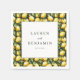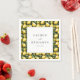 Dessa bröllopsservetter har en livlig och glädjefull design med en central vit fyrkant omgiven av ett livfullt mönster av citroner och gröna blad. De ljusgula citronerna, illustrerade i akvarellstil, skapar en fräsch och sommarlik känsla, medan den klassiska serif-typografin lägger till en elegant touch till de personliga namnen och datumet inom det vita utrymmet. Perfekta för att tillföra en lekfull men sofistikerad stämning till din fest, är dessa servetter idealiska för att fånga den glada känslan av din speciella dag.