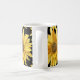 Lägg till lite glad gul färg i din köksdekor med kaffekoppar med solrosutskrift. Denna kopp har en gyllene gul blomma på en kontrasterande svart bakgrund. Köp denna kopp till dig själv eller ge en uppsättning blomsterkoppar som en husvärmegåva, bröllops- eller årsdagspresent.