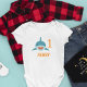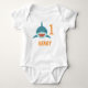 Bedårande födelsedagsbodys matchar våra Shark Bait-födelsedagsinbjudningar och festartiklar. Designen har en söt leende blå haj med ditt barns ålder bredvid och namn under. Perfekt för första födelsedagsfester och smash cake-sessioner!