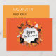 Glad Halloween-fest Svart hatt Orange Modern Inbjudningskort, Mall. Halloween Holiday Party Symboler. Inbjudningar & Annonsering - Kort. Halloween-pumpa, Magisk häxhatt, Fladdermus, svart katt, Spindel, Nät, Hus, Måne, Halloween-symboler, Illustration, Teckning. Halloween Magisk Natt-symboler Illustration med Anpassa Text Ändra alternativ