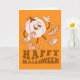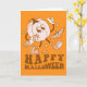 Rolig retro Halloween-grynkortsmall med retro-figur pumpa i groovy 70-tals stil. Glad Halloween-illustration med konceptet att söka efter godsaker. Vektorillustration med konturer