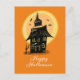 Glad Halloween Spökhus Svart Orange Vykort