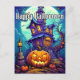 Det här fantastiska vykortet visar ett Halloween-temat skräckhus under hösten.