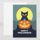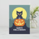 Glad Halloween Svart Katt och Pumpa Julkort