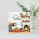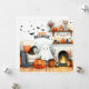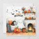 Glad Halloween vardagsrum med spöke Julkort