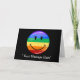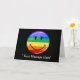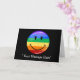 Ett gratulationskort med en leende HBTQ-prideflagga centrerad på framsidan. Under flaggan och på insidan finns en plats för dina egna ord.