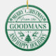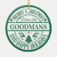 Den här klassiska dekorationen har en grönt för roligt och vit design som säger "God jul och Glad helg". Anpassa genom att lägga till din familj namn. Gör en underbar keepy eller gåva som i åratal kan överlämnas till komen!