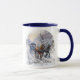 Jul helgdag med en vattenfärgad illustration av en hästdragen vagn i en snöåda med blåsor från vagnen till landskapet. Glad helg i ett Julietta-teckensnitt under bilden. En perfekt för dem som gillar nostalgiska helgdag. Designad för blå fälg och hantera mugg. Ytterligare stilar, storlekar, fälg och hantera färg finns tillgängligt.