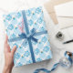 Cute, glad helg typografi i blått, med en stor blå, blå dekoration på vit bakgrund.
