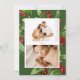 Festivt botaniskt, flerfoto-helgdag-kort. Glad helg i grönt-skript. Kortets egenskaper, elegantens vattenfärg ramar av grönt och bär med en koordinerande bakgrund av grönt färg. Ett foto på framsidan och två foton på vågrät på baksidan.