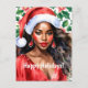 Glad helg Black Woman Santa Hat Vykort
