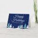 Vackert midnatt blå himmel med julfesten träd dekorerar detta söt, anpassningsbar företagscertifikat Glad helg kort. Snö linjer, den vackra skogen och det vita snöflingor sprinkler sig i luft nattetid. Anpassa de här affärskorten från ditt företag.