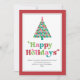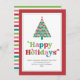 Ljus "Glad helg"-typografi i rött, grönt, rosa och teal. Redot Text som du vill anpassa med namn och datum. Julgran med rosa snöflake. Färgfulla Rand-baksidor.