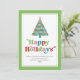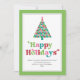 Ljus "Glad helg"-typografi i rött, grönt, rosa och teal. Redot Text som du vill anpassa med namn och datum. Julgran med rosa snöflake. Färgfulla Rand-baksidor.