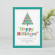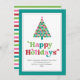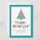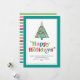 Ljus "Glad helg"-typografi i rött, grönt, rosa och teal. Redot Text som du vill anpassa med namn och datum. Julgran med rosa snöflake. Färgfulla Rand-baksidor.