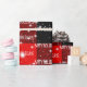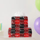 Blomvita stjärnor och Glad helg på röd och svart buffel. Text kan ändras.