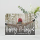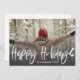Modern julkort med vit "Glad helg-kalligrafi med övertoning. Anpassa till eget foto och till din egen familj namn för att göra mallen unik.