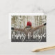 Modern julkort med vit "Glad helg-kalligrafi med övertoning. Anpassa till eget foto och till din egen familj namn för att göra mallen unik.