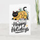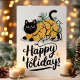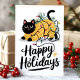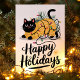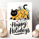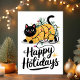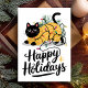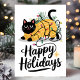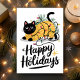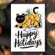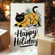 Fira helgdagarna med detta vackra "Glad helg"-kort som innehåller en lekfull svart katt i en mysigt sötare inslagen i färglös ljus. Perfekt för kattälskare och de som njuter lite stollig under festsäsongen, det här kortet kommer säkert att göra någon helgdag ljusare! Den trevliga och söta designen, komplett med smart helgdag ljus och en mysigt tröja, ger dig lite roligt till dina semesterhälsningar. Perfekt för att sprida glädje och värme till vänner, familj eller medarbetare den här julhelgen.
