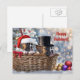 Cute boxer-valpen hundar i basket med roligt och prydnadsföremål. Ett sött julkort i Glad helg
