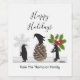 Denna utformning har tre penguiner bland olika symboler för vintersäsongen: en snöflake, gräs-kon och holly. Den humoristiska illustrationen av djur med personlig gör söta, roliga och unika vin-etiketter.