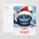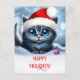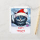 Cute Glad helg vykort med stora blåögda grått-kattar och julhatt. Ett roligt sätt att skicka hälsning till denna julsäsong!