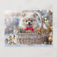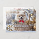 En söt Pommern-valp-hund på julen basket. Han ser mycket lycklig ut och kommer med ett leende för glad helg!