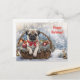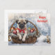 För söt en pug i en basket och ord Glad helg. En roligt och ett vykort för Julafton.