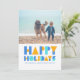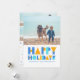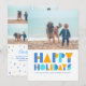 Glad helg färgglad fotokollage julkort har en rolig blå och gul design, med plats för ett älskat foto på framsidan och fyra till på baksidan. Anpassa hälsningen för att skicka varma julhälsningar till dina nära och kära på ett unikt färgglatt sätt. Gör denna julhelg minnesvärd med vår samling glada och anpassningsbara kort.