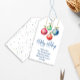 Den här designen har en märkre i glad helg, med färgstark vintage, vattenfärgsröd och grönt, Julgran-dekorationer, en snyggt klassisk, med traditionell skripttypografi och kalligrafi, underbar för helgdag- eller party favors-presentförpackningar