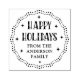 Winter helgdag frimärke med texten "Glad helg" i ett festivt teckensnitt med anpassningsbarna nedan. Omkring kant är en vågigt, punkt gräns och retrostjärnor.