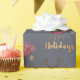 Denna är en vattenfärg, och färg ritar illustrationen av en groptjurhund med den röda scarfen och horn på kronhjort. Det något att säga "glad helg" i guld- stilsort för skina faux under hunden.