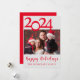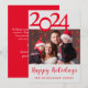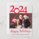 Glad helg Fotojulkort. Rött och vitt julklapp med ett foto från din favoritfamilj till med vänner och släktingar. Innehåller skripttypografi och stora 2 024-bokstäver. Anpassa till din stil.