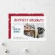 Du är stolt över att vara från Oklahoma, skicka ut en ljushjärt statskund i julhelgen med det här fotokortet lycklig helgdag med texturerad text i röda och blå nyanser och accentuerad med snöflingor. Anpassa med ditt eget meddelande om glädje, plats, din familjs namn-text och dina tre favoritfoton. Om du vill justera fotona för bättre placering i lägeformen, användor du länken "anpassa ytterligare" och markerar fotot i lagrar och användan i Skörd verktyg för att skörd bilder ska få plats. Du kan ändra typsnitt, färg och till och med lägga till fler bilder eller text på baksidan och rensa den mönstrade baksidan för en solid bakgrund.
