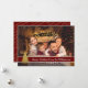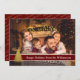 En modern fotojulkortsdesign med din familj som fyller kortet ansikte. Roligt modern konst Julgran dekorera med mörk rött textband för ord.