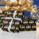 Festive black, red and grönt hand plockade tecknad gnomes and snöflingor Glad helg julklapp wrap.