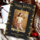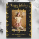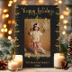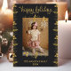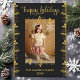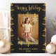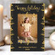 I detta 5 x 7-julkort står det "Glad helg" i kalligrafin i guld glitter accentuerad med guld löv, löv och gräs. Exempel på fotoartighet av Kate Moss Peekaboo Photography.