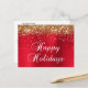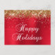 Glad helg-textmeddelande på en faux röd folie och guld glitter. Ett modernt glatt helgdag-vykort för dina anhöriga. Skapa ditt eget textmeddelande på baksidan. Du kan radera textgrafiken och använda systemet så att du kan utforma en egen framsida.
