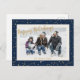 Glad helg 1-fotojulkort med guld-effektskript och gräns med guld-stjärnor, som också täcker baksidan av kortet. Tryck på personlighetsknappen för att lägga till foto, lägga till din familj namn eller ditt namn och sprida julhälsningen långt och brett.
