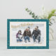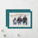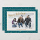 Glad helg 1-fotojulkort med guld-effektskript och en gräns av djup teal med guld-stjärnor, som också täcker baksidan av kortet. Tryck på personlighetsknappen för att lägga till foto, lägga till din familj namn eller ditt namn och sprida julhälsningen långt och brett.