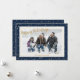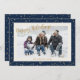 Glad helg 1-fotojulkort med guld-effektskript och en gräns av djupt blått med guld-stjärnor, som också täcker baksidan av kortet. Tryck på personlighetsknappen för att lägga till foto, lägga till din familj namn eller ditt namn och sprida julhälsningen långt och brett.